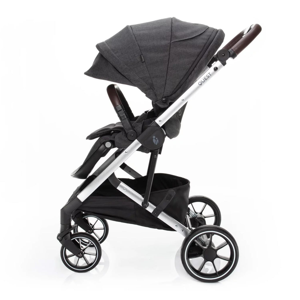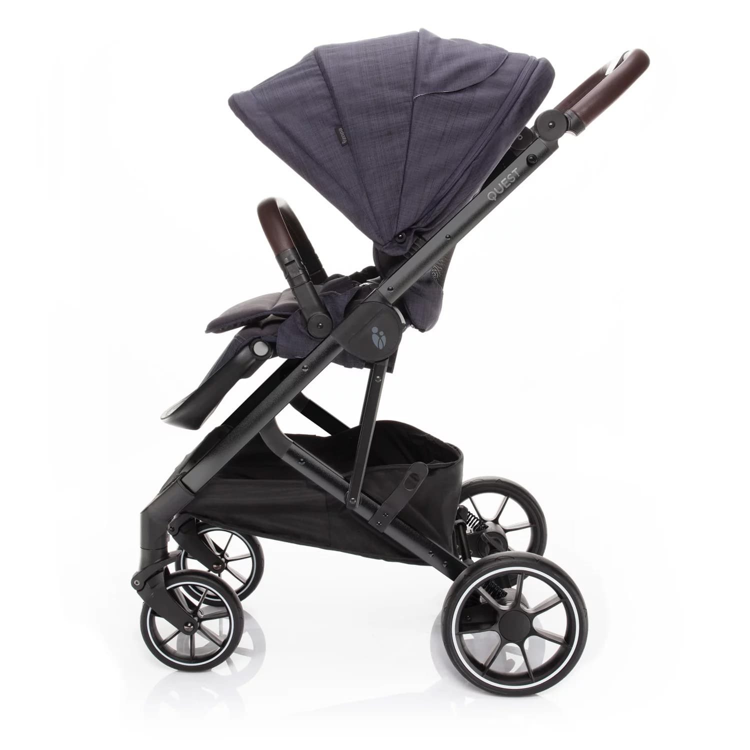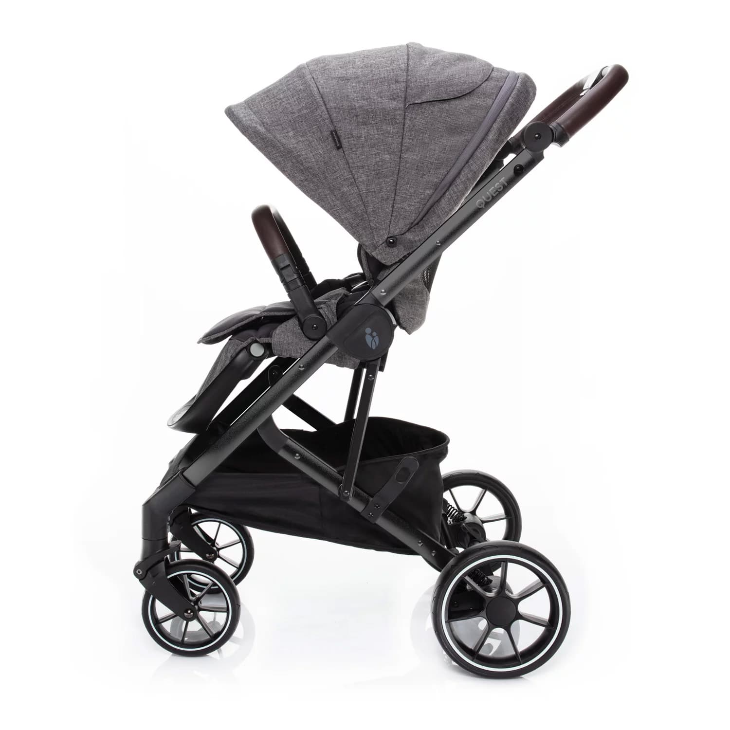 Il passeggino Quest si piega facilmente anche con la seduta sportiva montata, sia in senso di marcia che contrario. Grazie al meccanismo di sicurezza intelligente, rimane stabile da solo quando è piegato. Con un peso di soli 11 kg, è facile da trasportare e spostare.