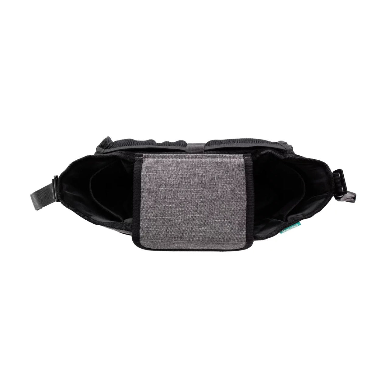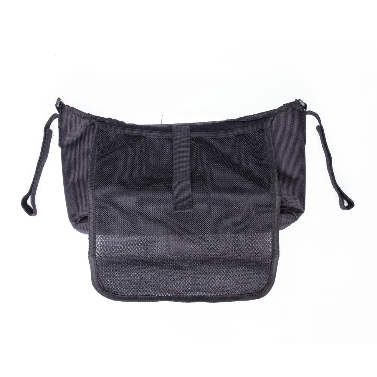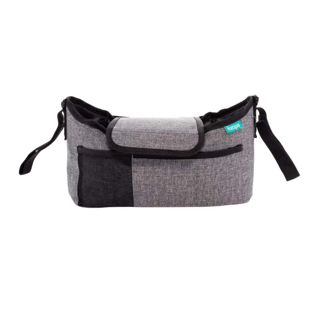 L’organizer offre ampio spazio e sei scomparti per tutti gli oggetti essenziali. La tasca frontale è dotata di un vano in rete per il cellulare e di uno spazio per piccoli oggetti. Sul retro si trova una tasca in rete in cui può essere comodamente riposta una rivista. Lo scomparto principale è progettato in modo da poter posizionare le bottiglie ai lati. L’organizer si fissa facilmente al manico del passeggino grazie a speciali ganci con chiusura a strappo.