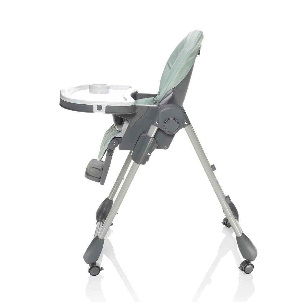 Schienale reclinabile, poggiapiedi regolabile, altezza regolabile, distanza del vassoio regolabile, cintura di sicurezza a 5 punti, facile da pulire, riduttore per i più piccoli, ruote con freno, dimensioni compatte da chiuso – questo è il seggiolone Monti 2.