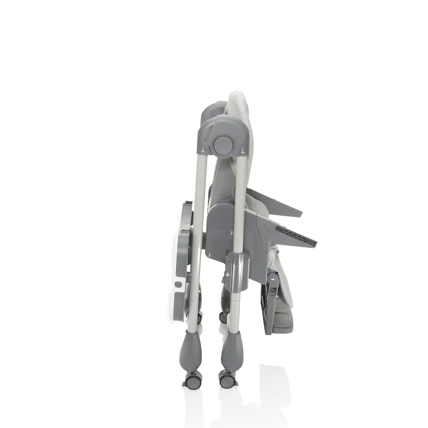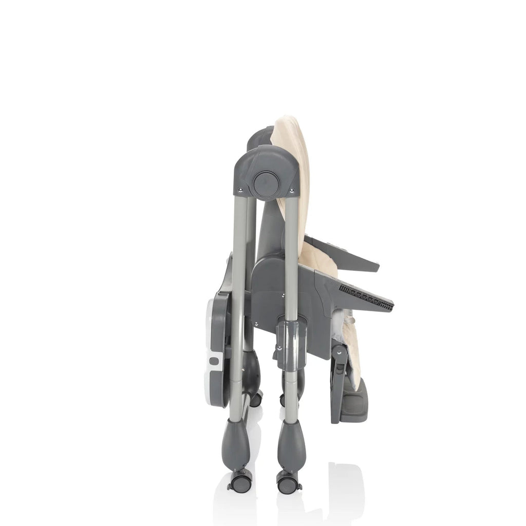 Il seggiolone Monti 2 si richiude facilmente e, grazie alle sue dimensioni compatte da chiuso, occupa pochissimo spazio. Inoltre, è dotato di ruote con freno che ne facilitano lo spostamento e il posizionamento. Per una maggiore praticità, il vassoio può essere agganciato sul retro del seggiolone quando non è in uso.