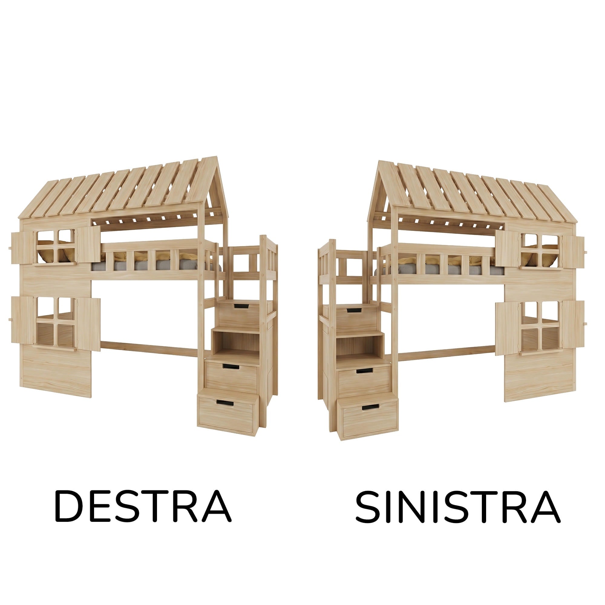 BusyKids Letto a soppalco basso a forma di casetta GALAXY-HOUSE MAX con scala contenitore 90 x 200 cm