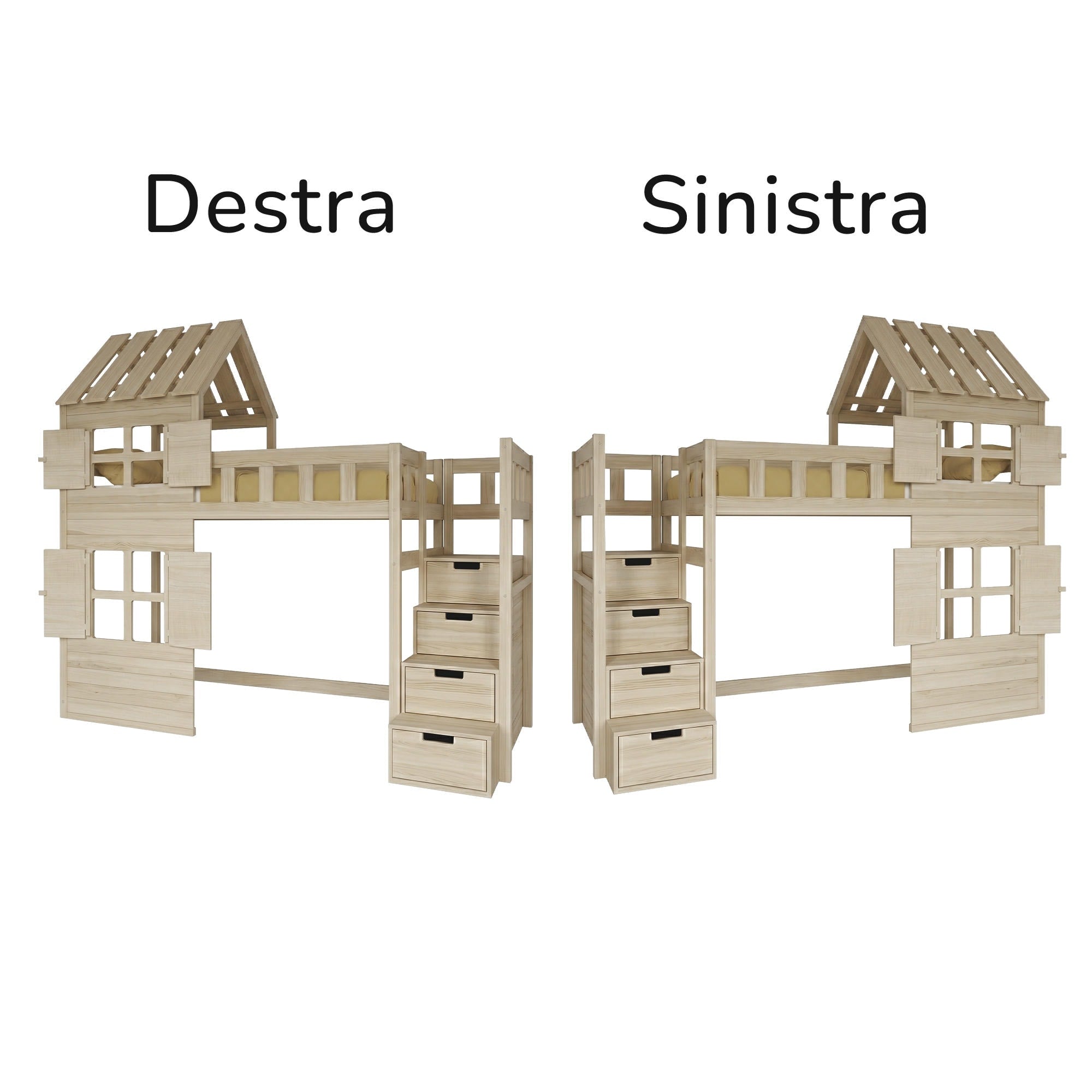 Il modello è realizzato in pregiato legno massello di pino, apprezzato per la sua stabilità, durata nel tempo e bellezza naturale. Questo materiale robusto ed ecologico è ideale per i mobili per bambini. La superficie è trattata con una vernice ipoallergenica a base d’acqua, sicura per i bambini e perfetta per l’uso quotidiano.