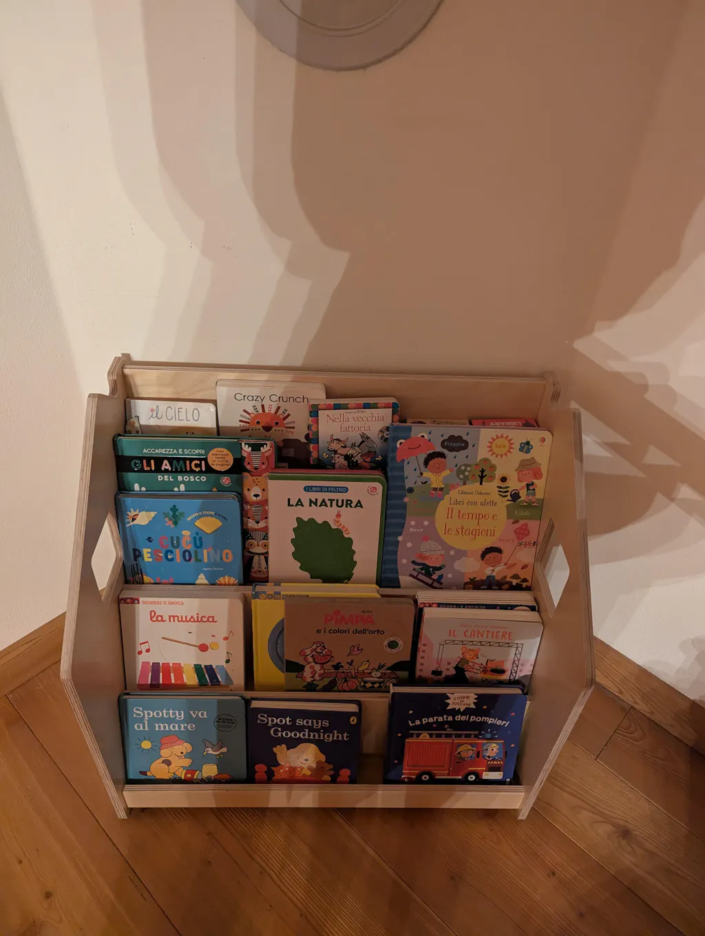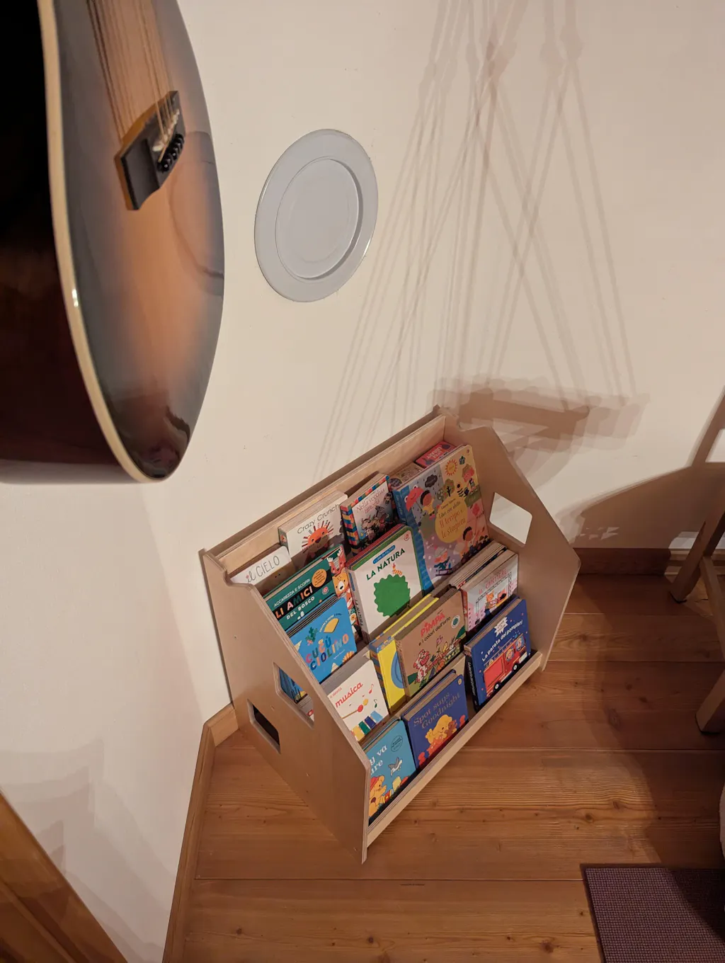 Grazie al suo design minimalista, lo scaffale per libri si adatta a tutti gli interni. È composto da 4 ripiani e può contenere molti libri; sul retro c'è anche uno spazio per riporre i giocattoli o i libri. Lo scaffale Montessori è stato progettato con grande attenzione alla sicurezza: è stabile, rivestito con vernice a base d'acqua e tutti gli angoli sono arrotondati.