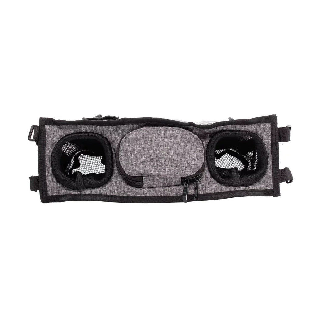 Nella parte anteriore si trova una spaziosa tasca con cerniera per piccoli oggetti e una tasca a rete per lo smartphone. Al centro è presente un ampio scomparto principale per riporre tutto ciò che serve durante le uscite. Ai lati sono integrati due pratici portabibite. Grazie ai quattro ganci con chiusura a strappo, l’Organizer si fissa in modo rapido e sicuro al passeggino.