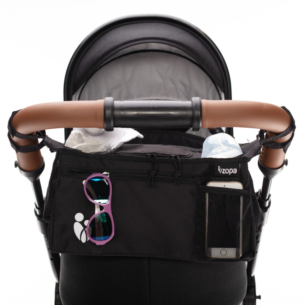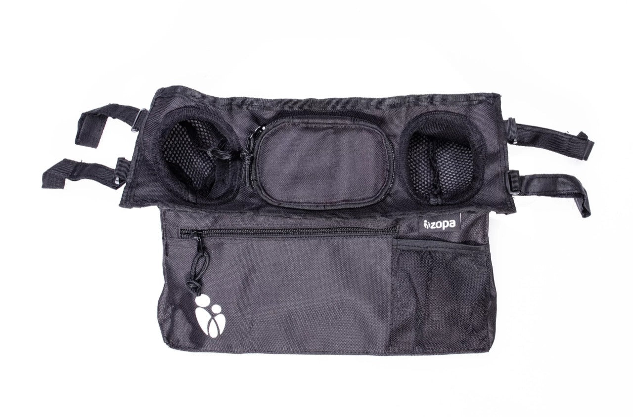 Ampia tasca con cerniera, scomparto per il cellulare, due portabibite e un fissaggio semplice – questo è l’Organizer per passeggino ZOPA.