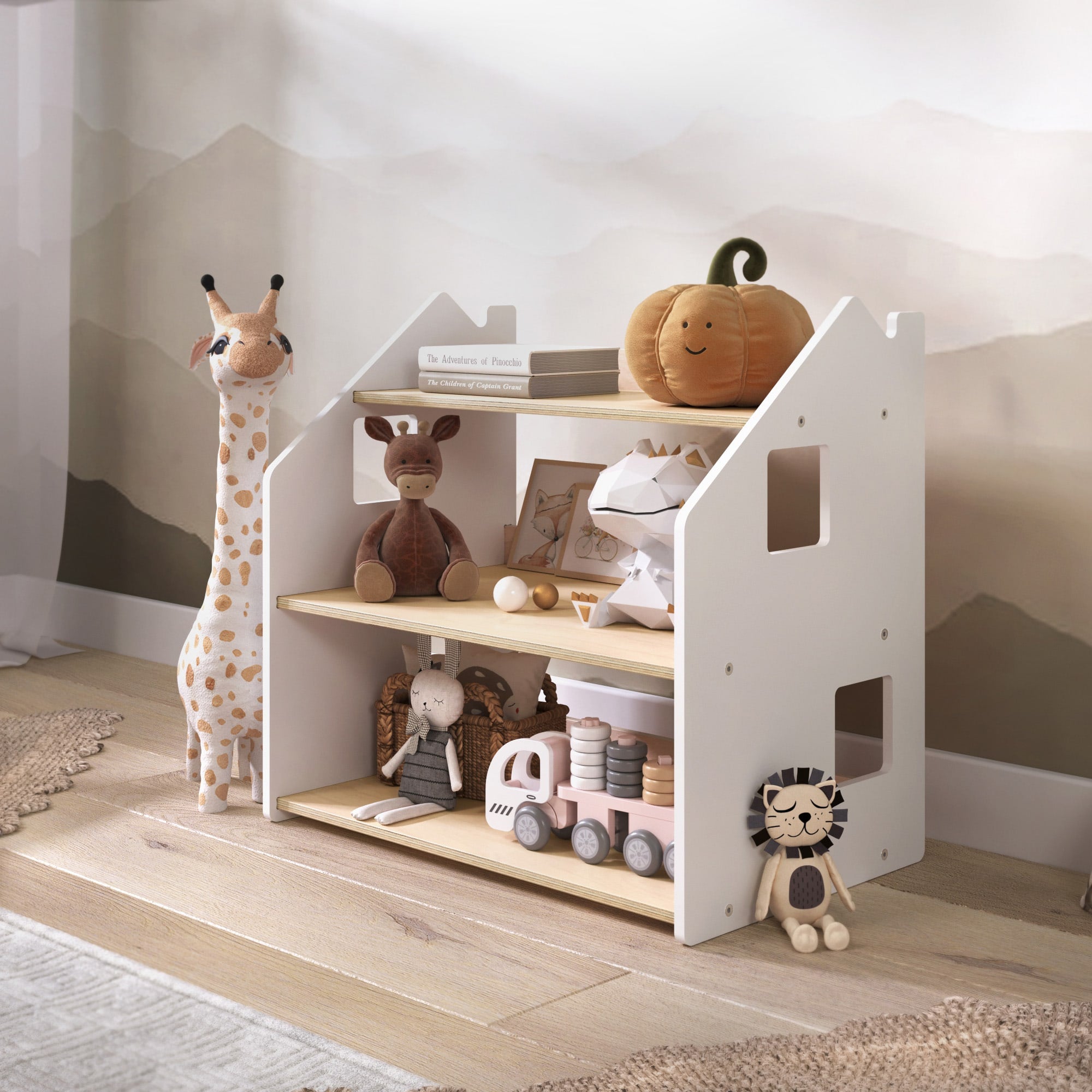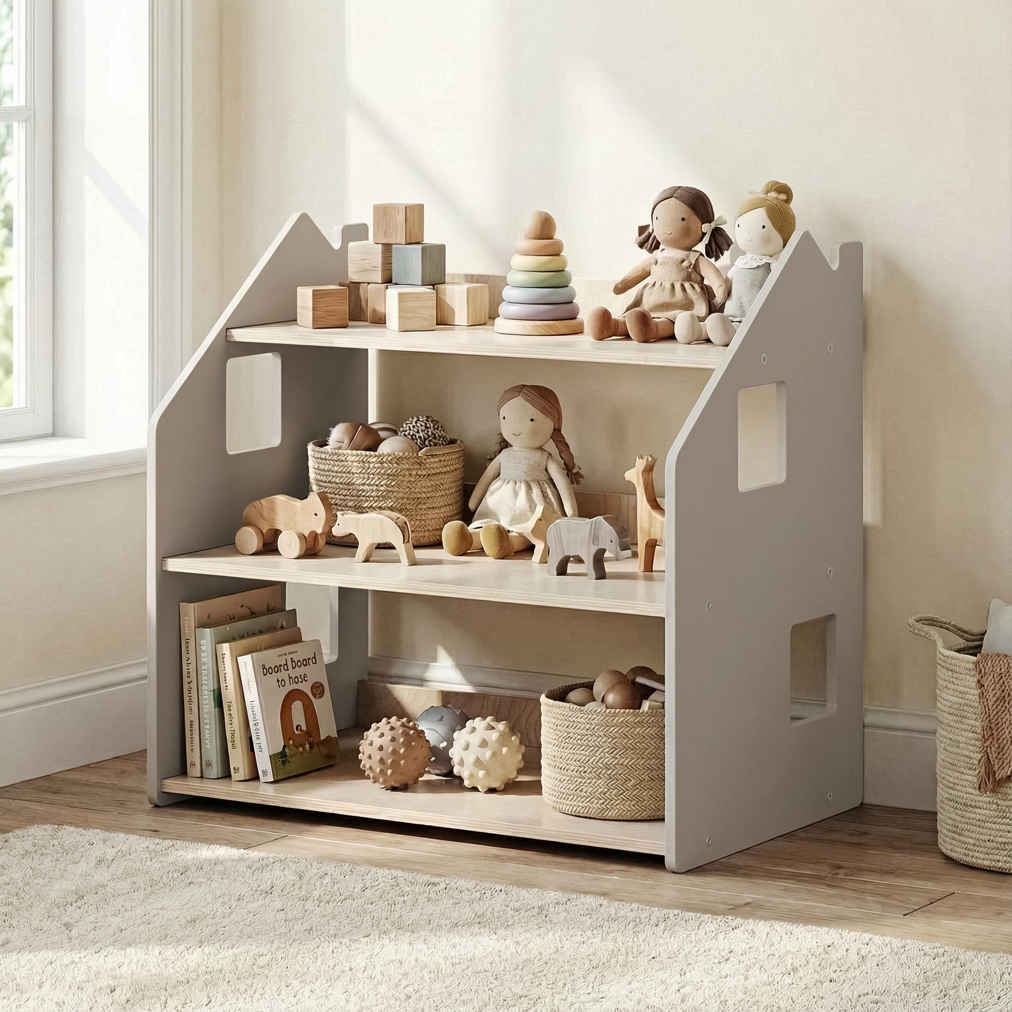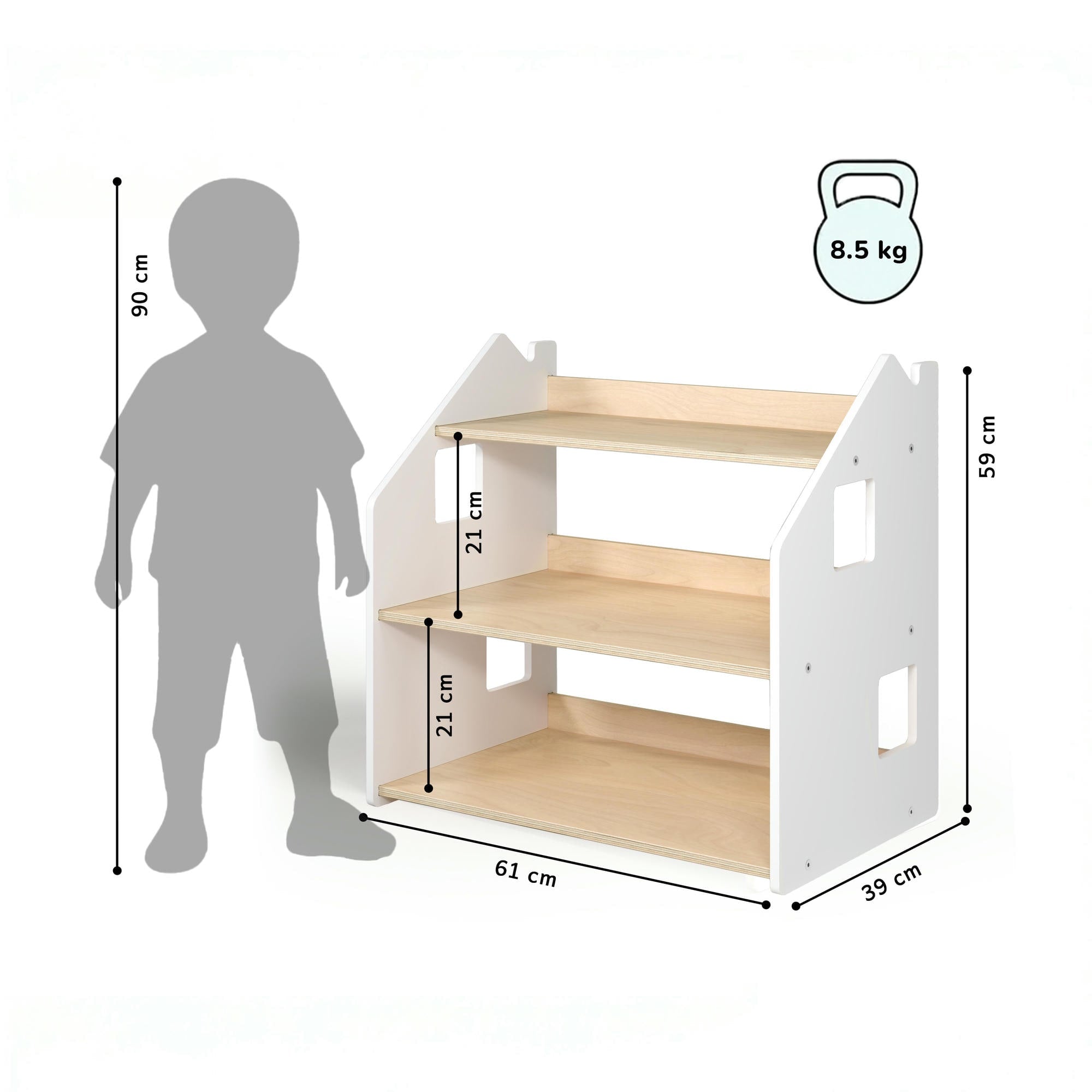 Lo scaffale è di dimensioni pratiche per essere utilizzato da un bambino senza l'aiuto di un adulto: sistemare i giocattoli, tirarli fuori, giocare e rimetterli a posto. I giocattoli saranno a portata di mano del bambino e lo spazio nella sua stanza sarà organizzato efficacemente.