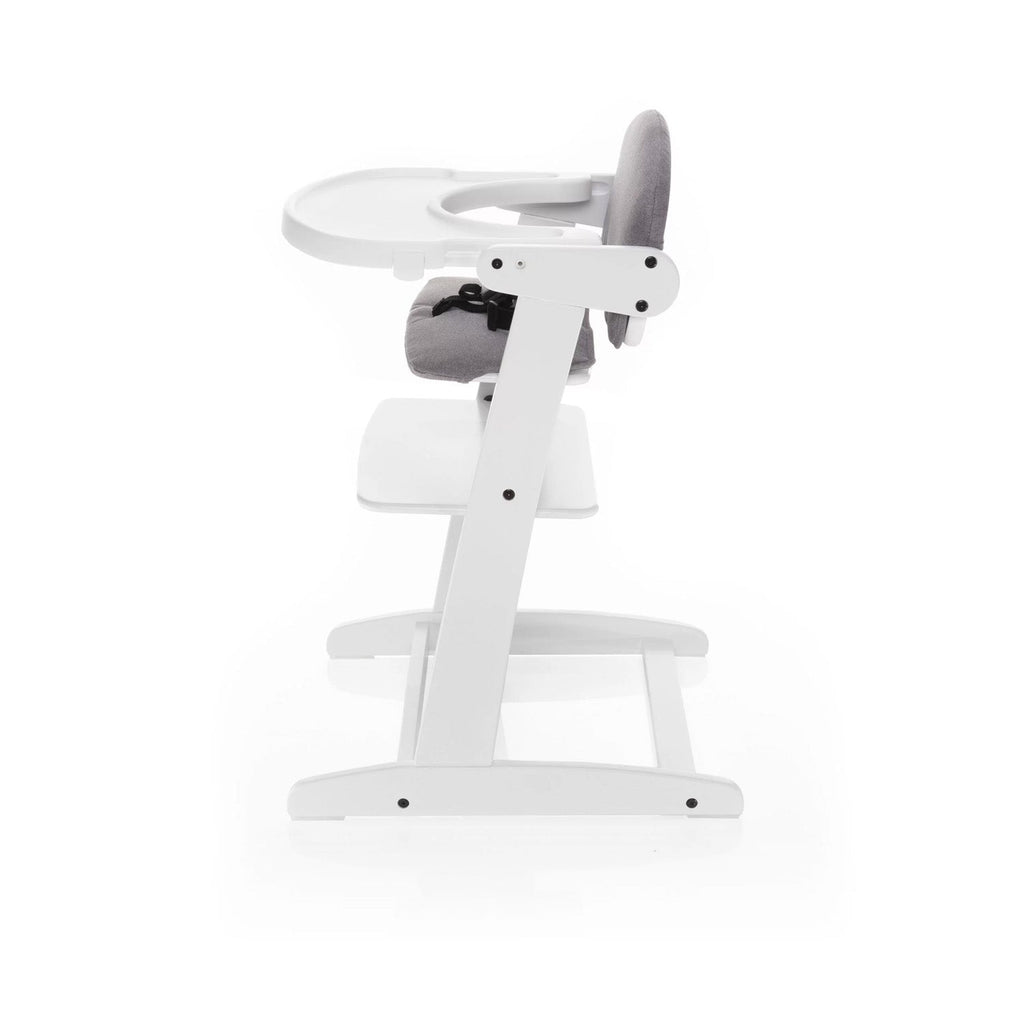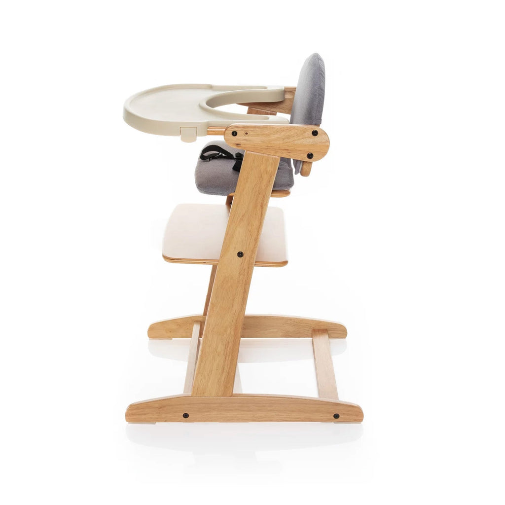 La struttura robusta in legno di alta qualità garantisce lunga durata. Per la massima sicurezza durante i pasti, l’imbottitura è dotata di cintura di sicurezza a 5 punti.